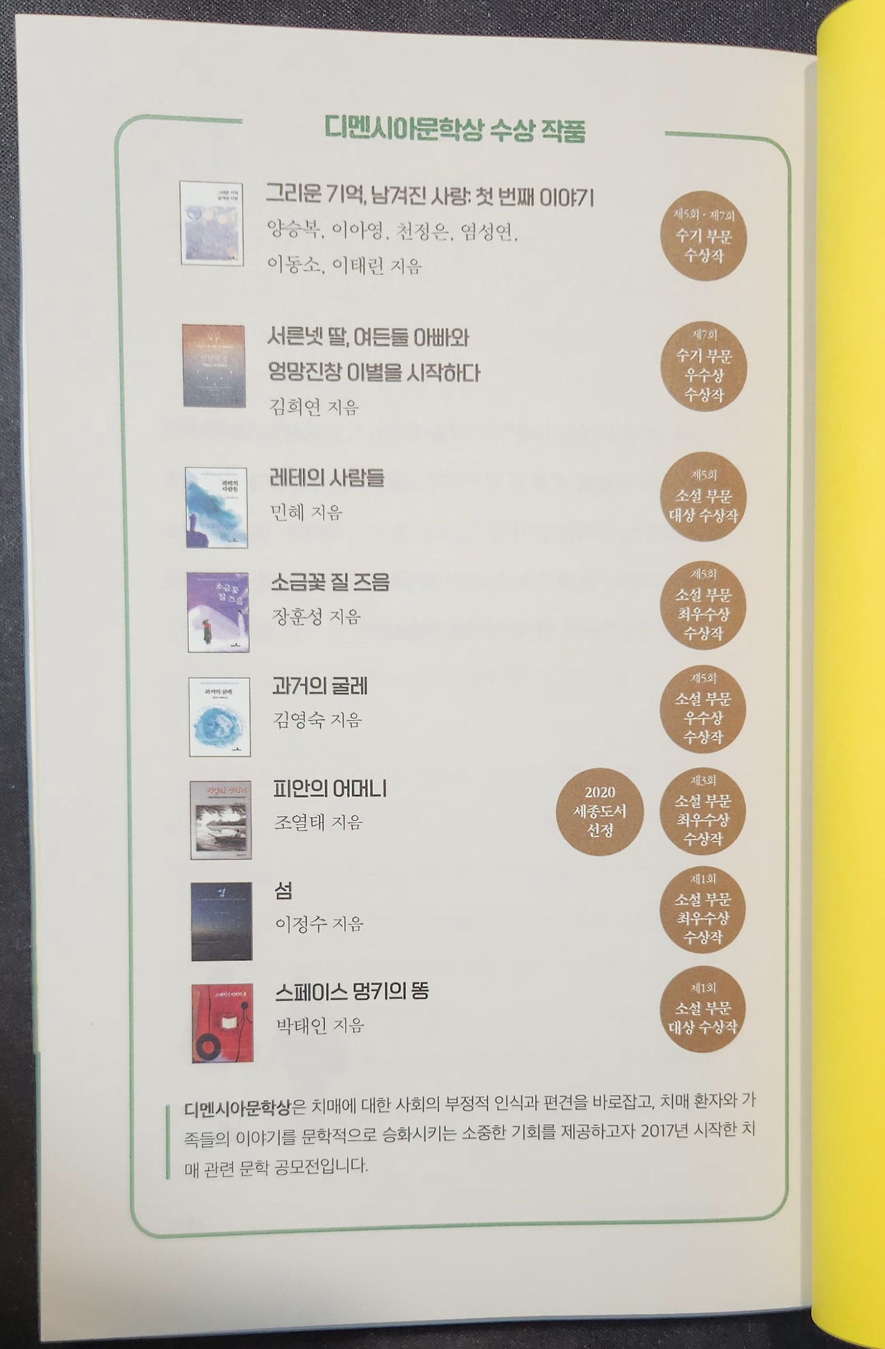P.S. 책의 맨 뒷장은 디멘시아문학상 수상 작품이 소개되어있었다.