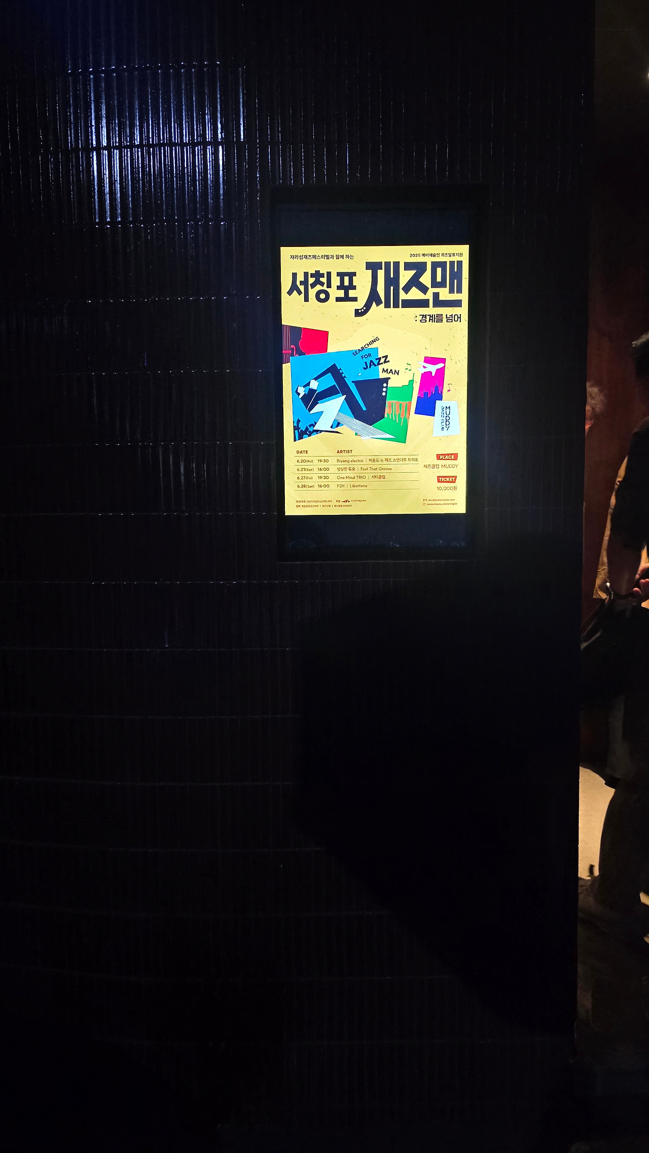 목요일 밤은 손성제 퀸텟으로 포문을 열었고 금요일은 서칭포재즈맨 (비양/BYN 트리오)과 한상원밴드의 공연이, 그리고 토요일은 서칭포재즈맨(성실한 듀오/필댓그루브)의 라인업이다.