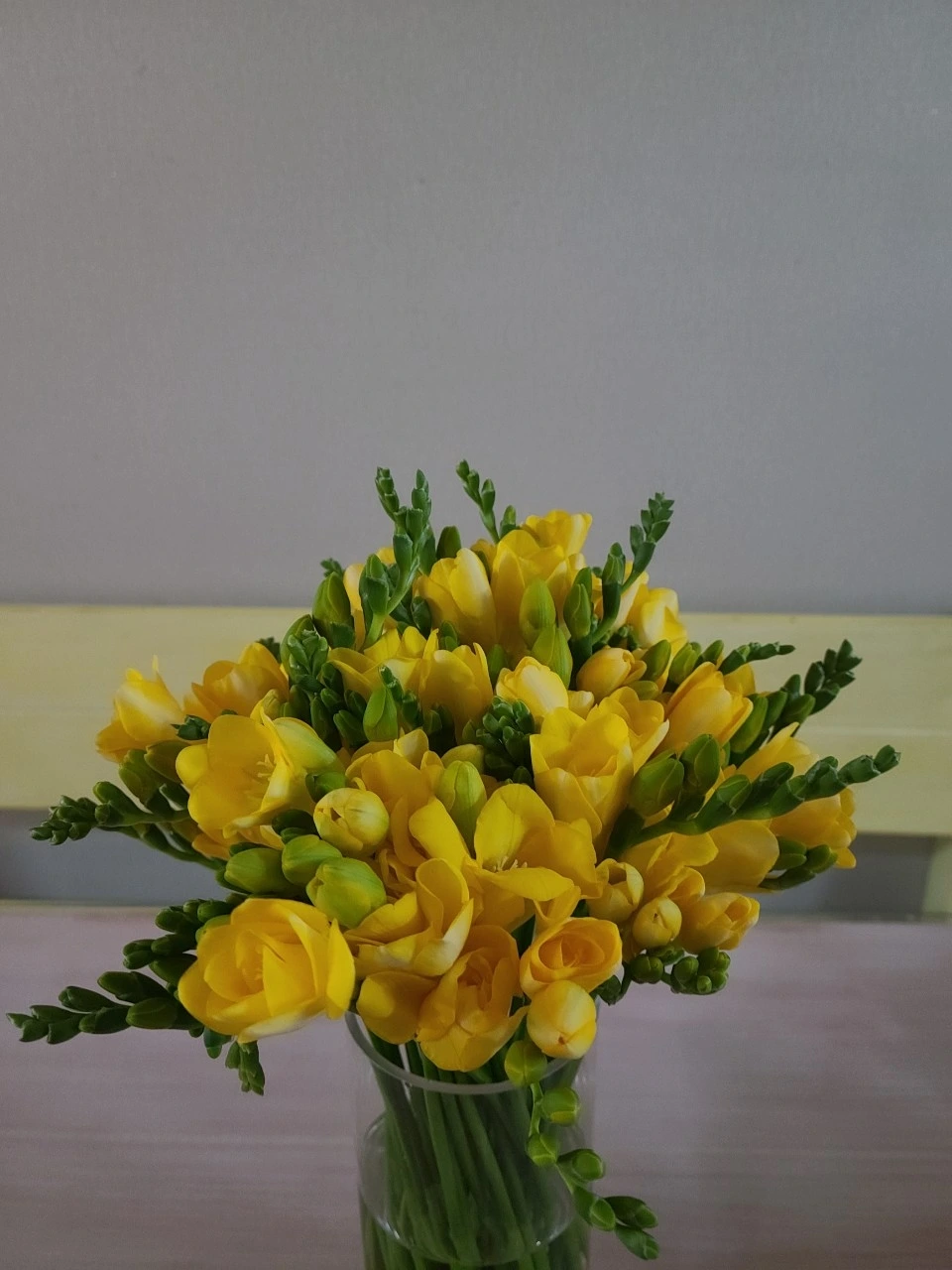 그냥 어정거릴 요량으로 나왔는데 익숙한 향기가 뒤를 돌아보게 했다 프리지어였다 한단이 다섯 다발씩 묶였는데 예년보다 거의 두배 가격이다 졸업시즌이기는 하나 졸업식은 없는 시국인데 아저씨는 다른 후진 거랑은 비교도 안되게 오래간단다 드문드문 찾는 이만 있다면 그냥 한번 가격을 지르는가 보다