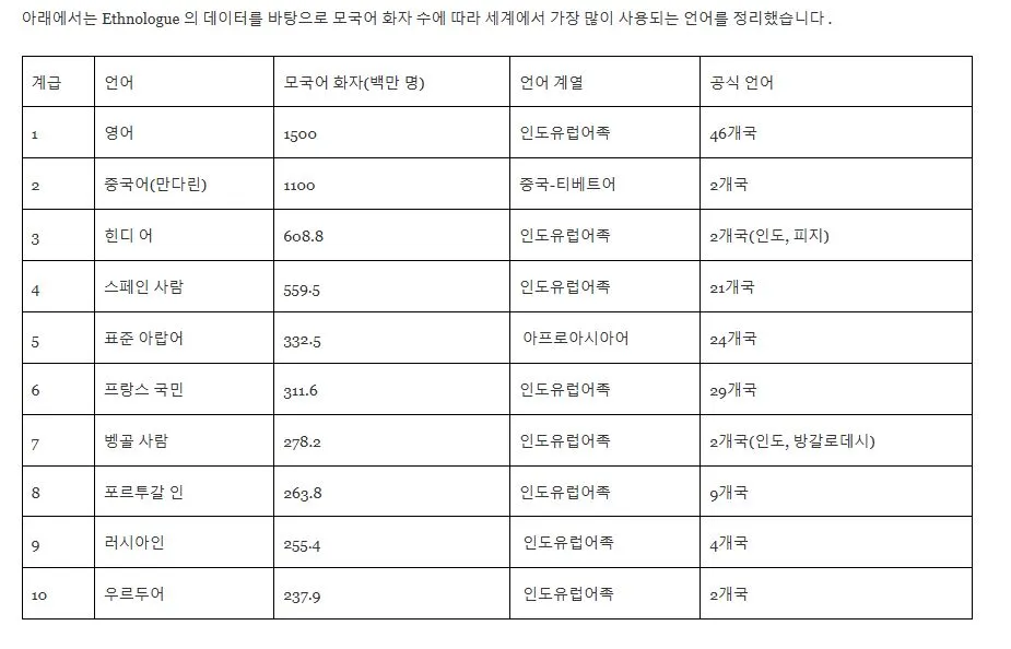 세계에서 가장 많이 사용하는 언어는 영어이다