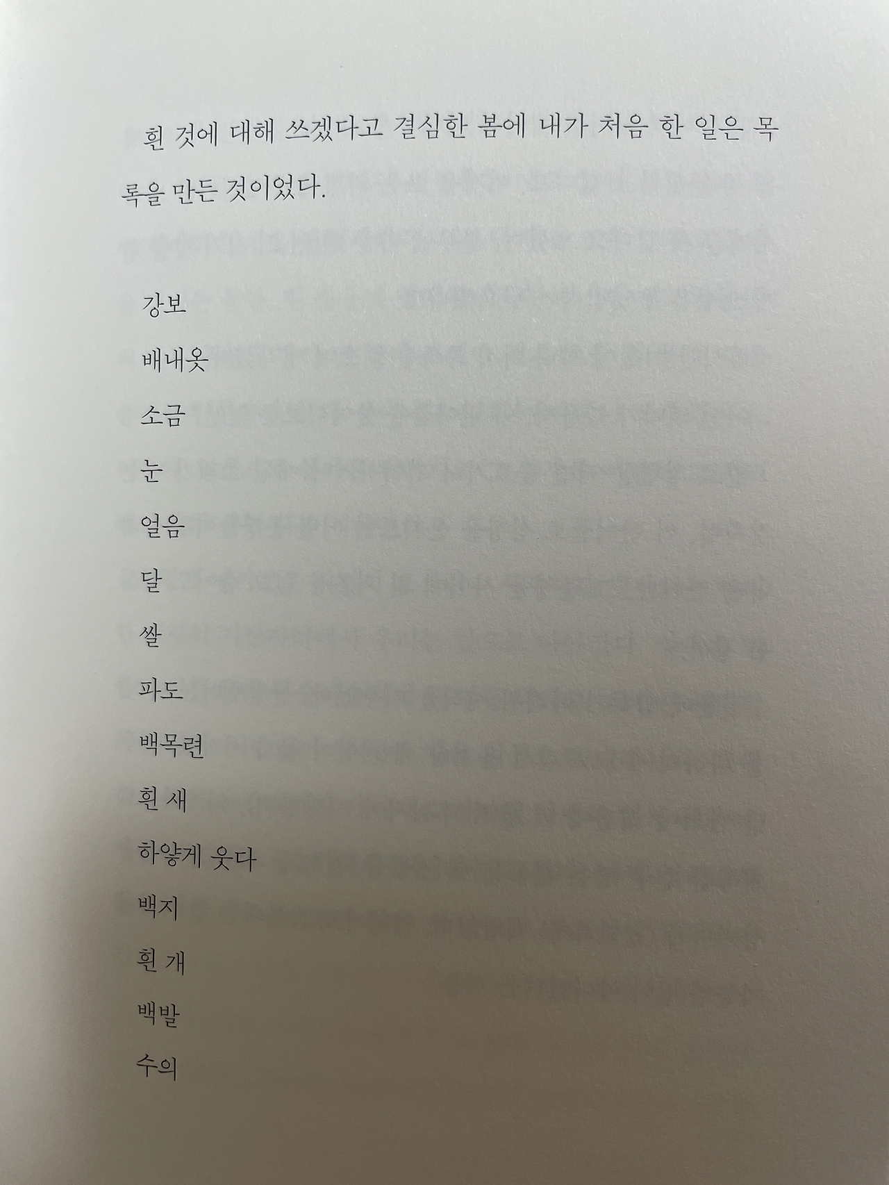 속보를 접할 때는 산책 중이었다. 기사 헤드라인에 적힌 ‘한강’과 ‘노벨상‘은 기이할 만큼 낯설면서도 아름답게 어우러졌다. 잠시의 시차를 둔 마음은 뒤늦게 벅차올랐고, 집으로 달려가 곧장 서재로 향했다. 20대 초반 빠져 읽었던 <채식주의자>와 새벽녘 불침번 근무를 함께했던 <소년이 온다> 사이에는, 2년 전 겨울 의정부 영풍문고에서 데려온 작가의 책이 자리하고 있었다. 숱한 작가의 책들 중 그 책을 집어 든 이유는 무엇이었을까. 단순하고 부드러운 그 한 글자의 제목에는, 그러나 설원에서 겨우내 제 몸을 가누는 순록과 같은 처연한 서늘함이 있었다. 전역날을 기다리며 여러 불안들을 애써 달래던 그 겨울, 나는 그 제목에 어렴풋이 비치는 내 모습을 발견했던 것 같다. 그리고, 흐르는 시간은 계절과 공간을 넘어 나로 하여금 그 책으로 다시 돌아가게끔 하였다. 나는 고민 없이 책을 집어 들었다.