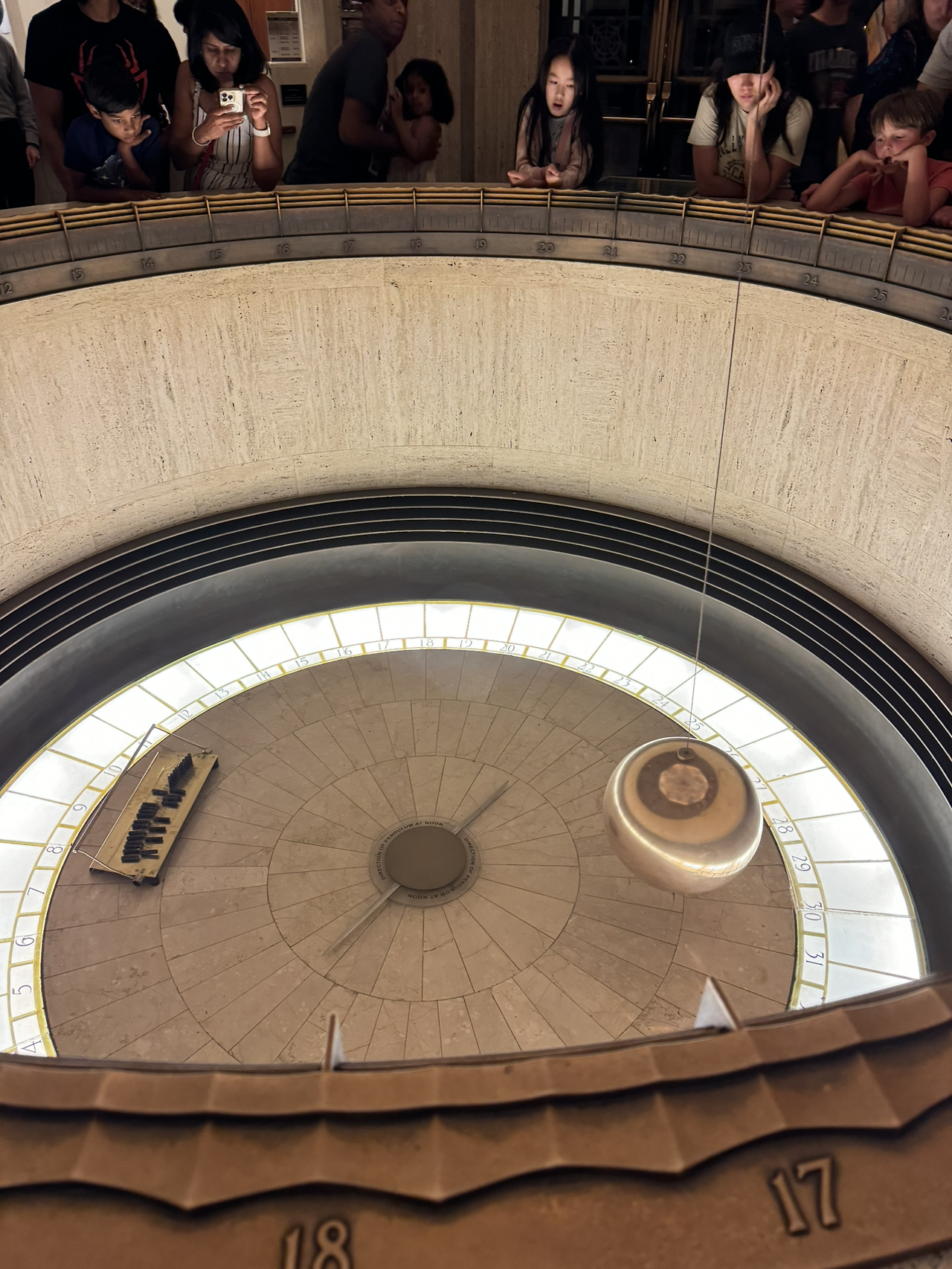 그들을 뒤로한 채 천문대 내부로 향했다. 내부에 들어서자 은은한 조명 아래 느린 호흡처럼 천천히 흔들리는 커다란 진자가 눈에 들어왔다. 진자가 바닥에 그리는 곡선은 마치 시간의 흐름을 눈으로 보여주는 듯했고, 그 주위를 둘러싼 조용한 공기와 약간 차가운 실내 온도는 박물관에 온 듯한 느낌을 줬다. 이외에도 여러 흥미로운 과학 전시물들이 전시되어 있어 하나하나 유심히 살펴보며 시간을 보냈다. 천문대의 망원경을 체험해 볼 수 있는 구역도 있었지만 길게 늘어선 줄을 보고 아쉽게 발길을 돌려야 했다.
