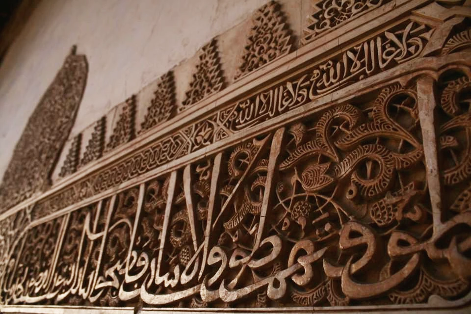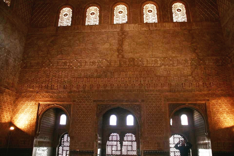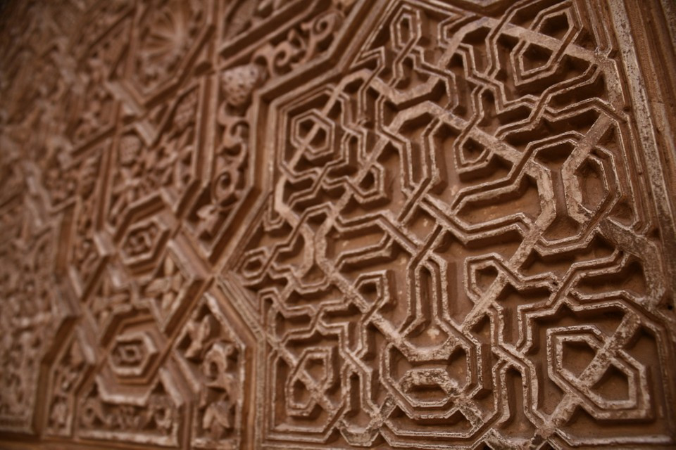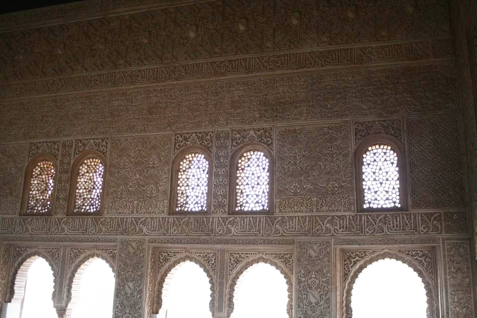 이슬람 특유의 문양인 아라베스크들이 곳곳에 있다. 아라베스크란 아랍 문자와 더불어 식물 문양이나 기하학 문양을 배합한 것들을 말한다. 우상숭배를 금지하고 있는 이슬람답게 그림 대신 아라베스크로 성인들과 알라를 표현해 두었다. 신과 성인들을 표현하다 보니 이들의 문자는 하나하나가 걸작이다. 그들을 찬양하는 또 다른 방법일 것이다. 알함브라 곳곳에서 볼 수 있는 그들의 문자나 다른 조각들은 매우 세밀하여 그들의 기술력과 아름다움에 대한 열망을 엿볼 수 있다.