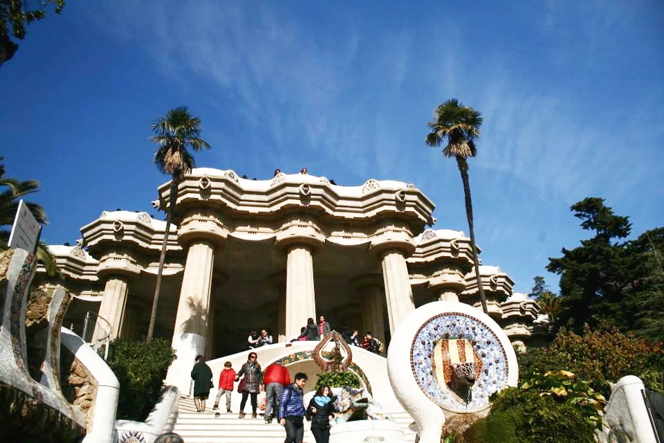 제일 먼저 간 곳은 구엘공원이다. 구엘 공원은 그의 친구이자 가장 큰 후원자인 구엘을 위해 지어진 곳이다. 지금은 시민을 위해 개방되어있다. 구엘 공원 곳곳은 자연을 모방한 아르누보 양식과 모자이크 타일로 가득하다. 건축물인데도 자연 속을 거니는 느낌을 받을 수 있다.