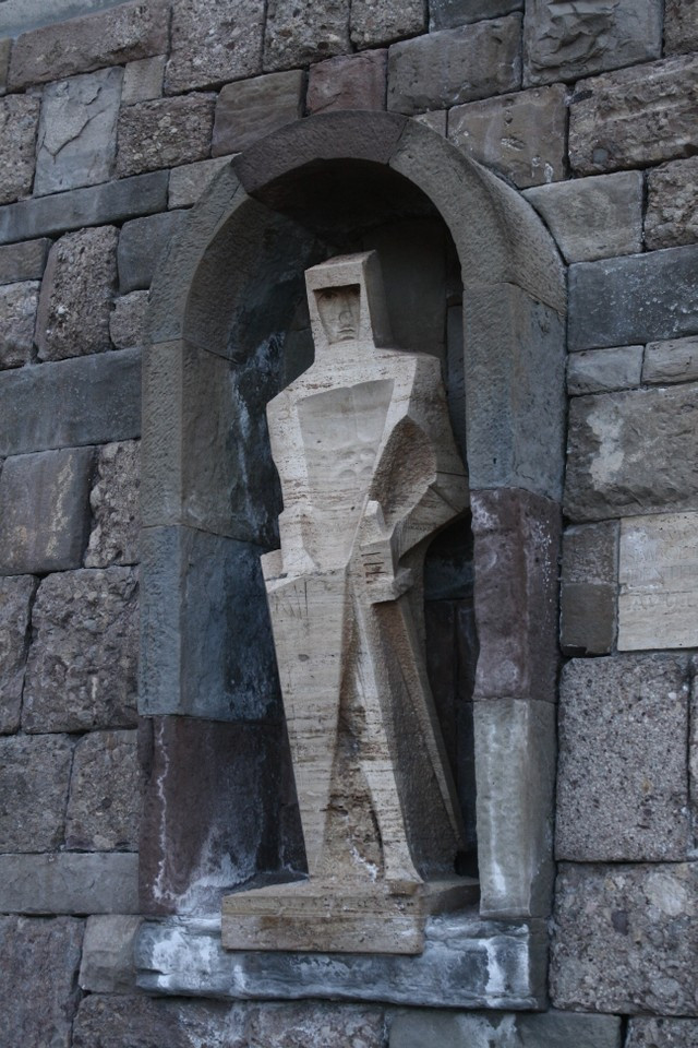 수비락스(수비라치)가 조각한 산타 조지 조각상이다. 항상 눈을 마주치게 되는 신기한 조각상이다. 역시 성가족 대성당의 수난의 파사드를 만든 가우디의 애제자답다. 특히 그가 만든 수난의 파사드에는 가우디의 조각상이 있다. 그 조각상이랑 분위기가 비슷하다.