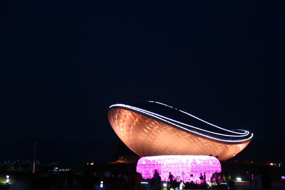 주차를 한 뒤 디 아크로 걸어간다. 일정 시간 간격으로 색을 바꾸는 이 조형물 주변으로는 넓은 공터가 있다. 강이 바로 옆이라 그런가 밤에도 시원하다. 사람들은 각자의 소중한 사람들과 행복한 시간을 보내고 있다.