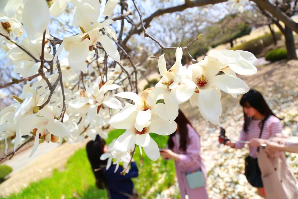 사람들이 벚꽃을 구경하기 위해 공원으로 산책을 나와있다. 벚꽃나무 그늘 아래 누워 떨어지는 벚꽃을 보고 있으면 더위는 모두 잊힌다.