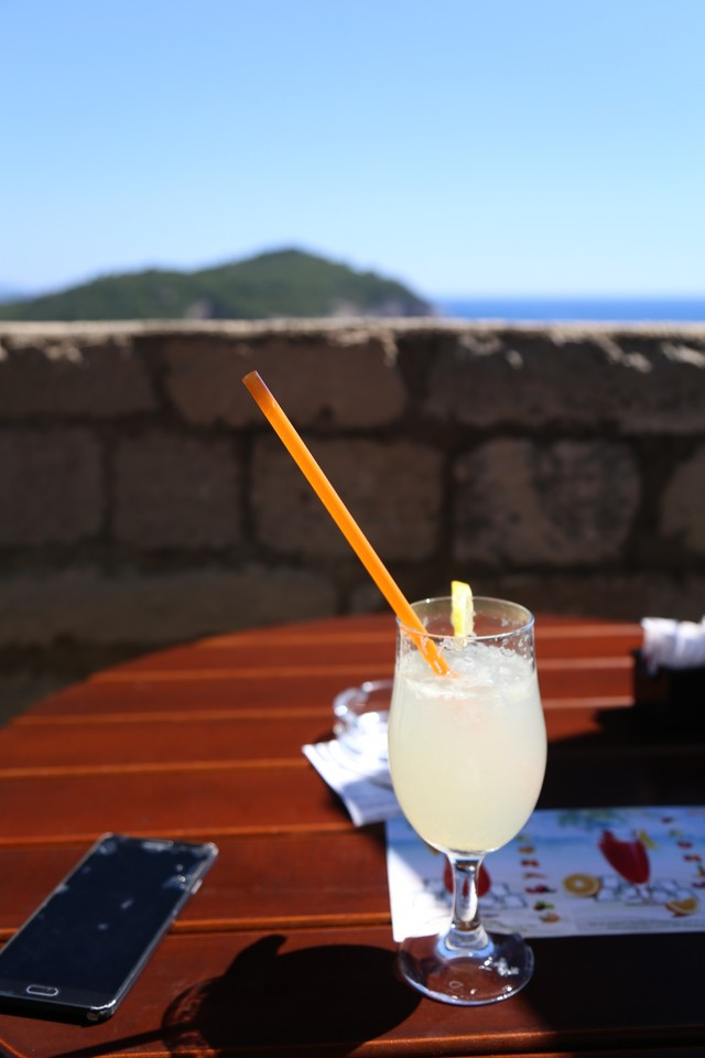 성곽을 걷다 보면 중간중간 노천카페들이 있다. 난 레몬주스를 시켰다. 그러니 진짜 레몬을 갈아준다. 레몬 특유의 상큼함과 달달함이 매우 강렬하다. 더위를 잊게 만들어주는 맛이다. 석벽 위의 카페에 앉아 바다를 바라보고 있노라니 행복감이 몰려온다. 아프리카에서 날아온 여독이 날아간다.