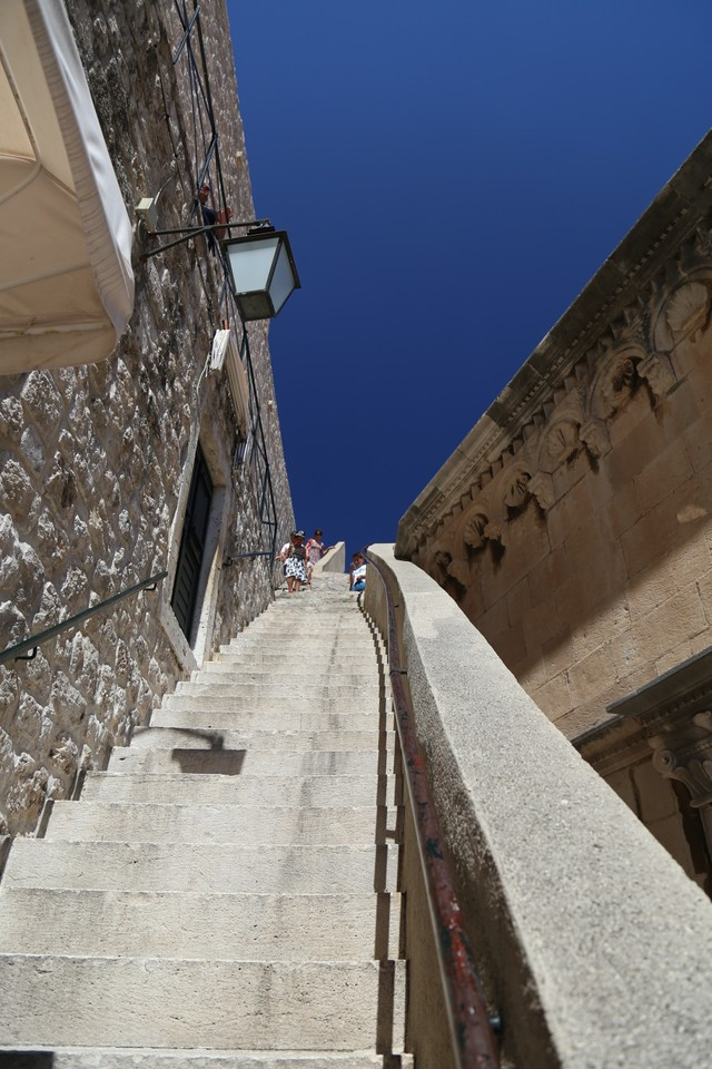 성벽을 내려와 구시가지를 벗어나 주변을 돌아보기로 한다. 필레 문을 나와 다리를 건너 광장을 지나 조금 들어가니 바닷가로 내려가는 길이 나온다. 그 길을 따라 조금 올라가니 절벽 위 벤치가 눈에 들어온다.
