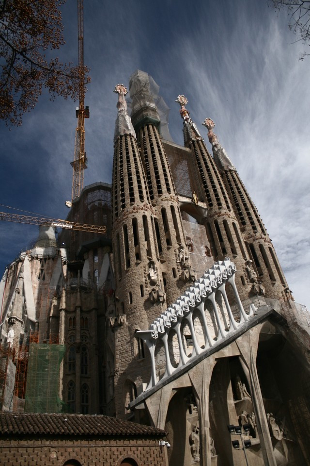 아직도 한참 건설 중인 성가족 대성당의 모습이다.