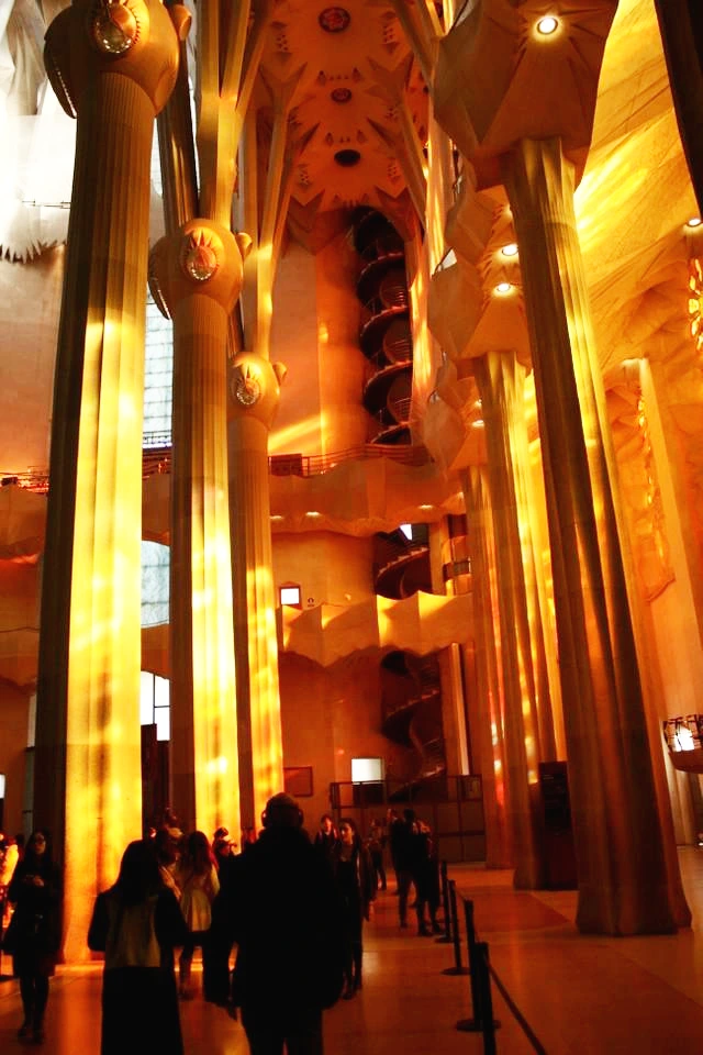 다른 성당에서 볼 수 있는 수많은 조각상과 스테인드글라스(성화가 그려진)는 없다. 하지만 내부는 환상적이었다. 빛이 주는 포근함과 정교한 규칙성에 의한 안정감은 다른 성당에서 볼 수 없는 감동과 편안함을 준다. 가족과 같은 포근함을 느낄 수 있다. 가우디가 왜 가족 성당이라 이름을 지었는지 조금이나마 이해할 수 있었다.