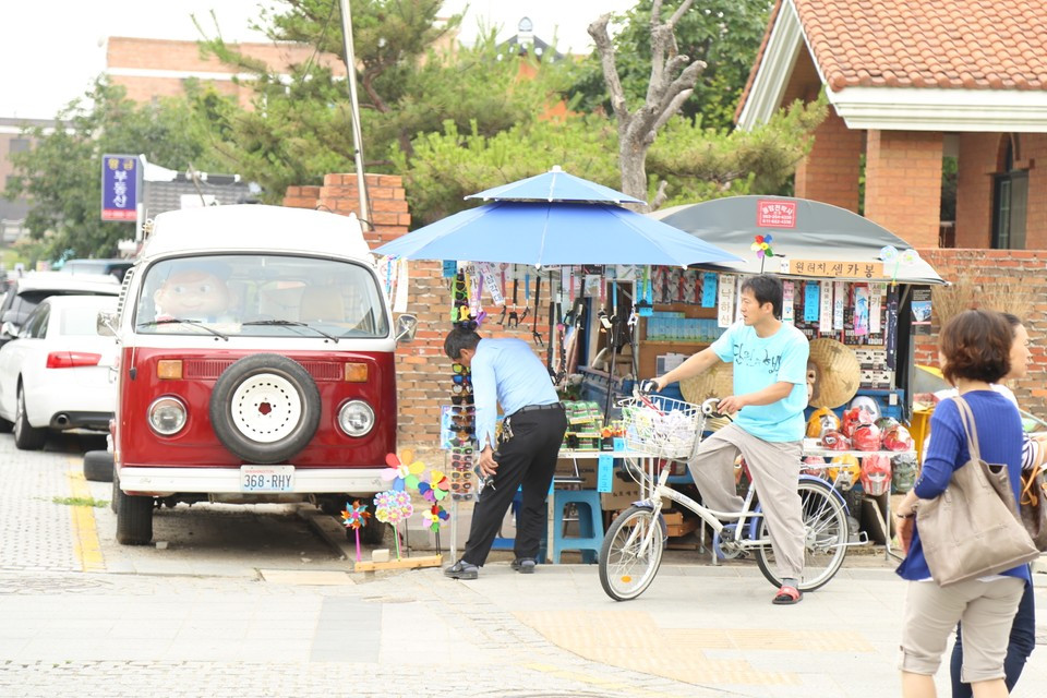 향교에서 나와 향한 곳은 오목대로 한옥마을의 전경을 볼 수 있는 곳이다. 한옥촌의 모습이 아름답다. 땀 흘려가며 올라온 보람이 있다. 전각 아래에서 땀을 식히며 물 한잔 마신다. 여기서 조금만 더 가면 벽화마을이 있다. 하지만 모주를 위해 과감히 포기한다. 모주란 막걸리에 생강. 대추, 계피 배 등을 넣고 하루 동안 끓였다고 한다. 실제로 먹어보면 계피향이 강해서 매우 향기롭다. 오목대에서 조금 내려가는 길에 모주를 파는 가게가 있다. 전주에 왔으니 모주 한잔해야지. 한 모금 하고 나니 기분이 좋아진다. 가족들과도 나눠먹기 위해 몇 병 더 산다.