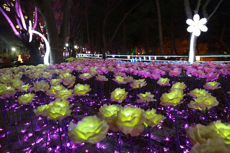 이월드 안에서 간단하게 저녁을 먹고 놀이기구를 타러 간다. 시간이 한정되어있다 보니 바쁘게 공원을 돌아다닌다. 정신없이 놀다 보니 벌써 해가 지기 시작한다. 줄을 서있는 동안 이미 풍등은 날아가버렸다. 원래 계획은 83 타워 전망대에서 날아오르는 풍등을 볼 생각이었지만 이미 너무 늦어버렸다. 이미 늦은 김에 최선을 다해 놀이공원을 즐기기로 한다. 해가 진 이월드는 반짝거리는 놀이기구와 LED 장미로 한층 더 아름다워지기 시작한다.