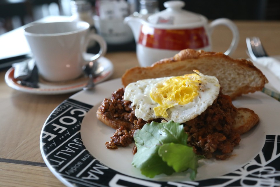 오늘 아침도 밀크티에 샌드위치. 살짝은 매콤한 양념을 한 다진 고기를 가득 넣은 샌드위치였는데 빵도 고소하고 양념도 훌륭했다. 제육볶음을 빵 안에 넣어두면 이런 맛이겠지. 한국음식이 벌써 그립다. 이때까지만 해도 이게 아프리카에서 먹는 마지막 밥다운 밥일 거라고 상상도 못 했다.