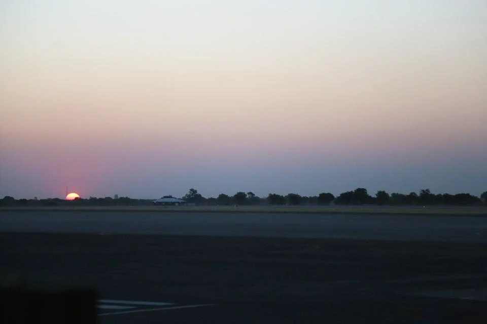 잠시 기다리니 비행기 탑승시간이다. 저 멀리 붉게 타는 하늘이 한 폭의 그림 같다. 마운에서의 마지막 해가 이렇게 사라져 간다. 곧 이륙을 알리는 방송이 나온다.
