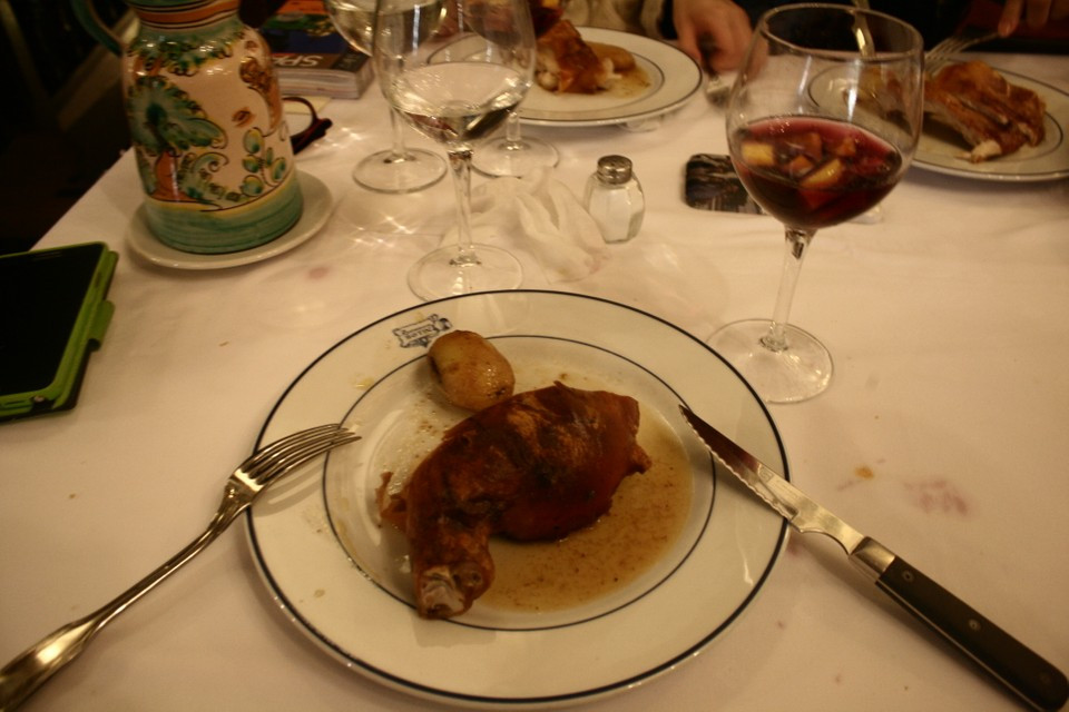 아버지가 마침 Cochinillo asado(새끼돼지 통구이)를 예약해두신 덕분에 맛있는 점심식사를 할 수 있었다.