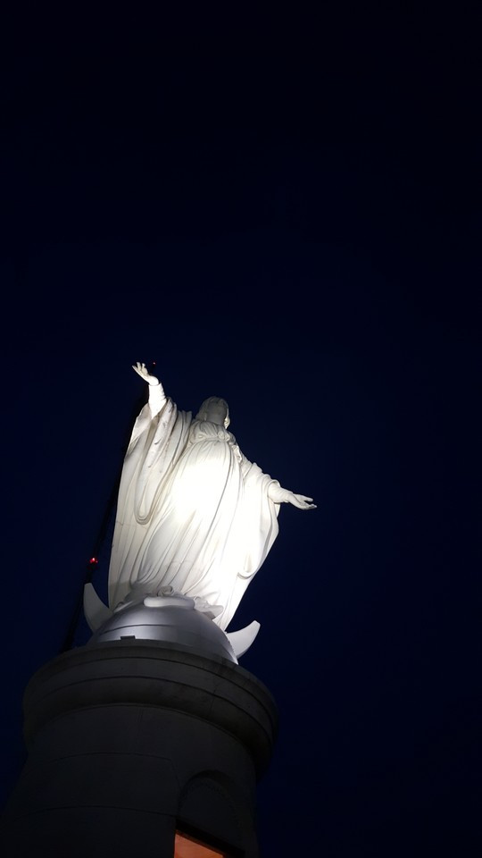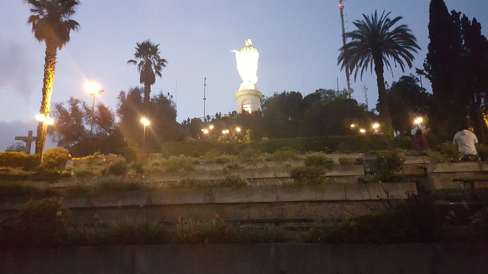 산크리스토발 정상에는 야외 성당과 큰 성모상이 자리 잡고 있으며 산티아고 시내 전부를 조망할 수 있다.