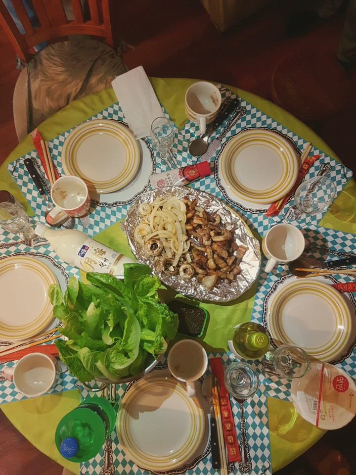 아까 마트에서 사 온 순대(!)와 떡볶이를 간단히 먹고 난 뒤 본격적으로 고기를 굽는다. 역시 고기는 옳다.