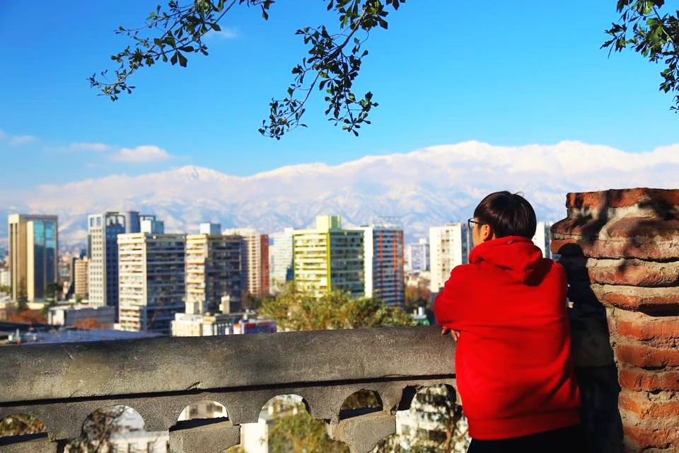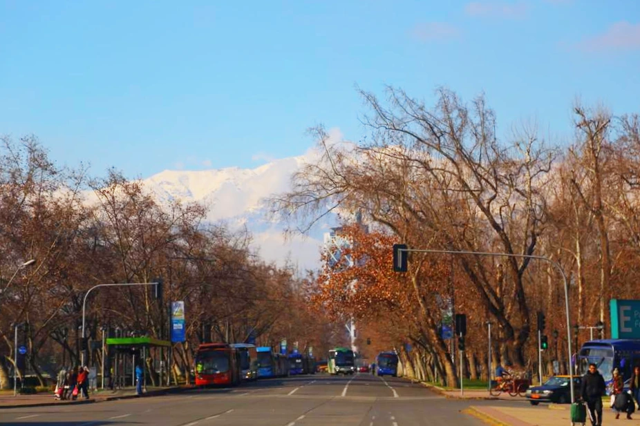 버스를 타기 위해 가는 길에 저 멀리 만년설을 안고 있는 산맥이 보인다. 구름과 설산을 배경으로 하는 산티아고의 전경이 매우 아름답다.