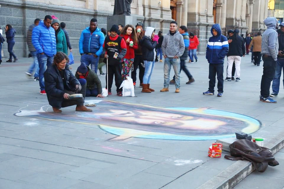 아르마스 광장으로 걸어 내려오니 바닥에 그림을 그리고 있는 예술가가 눈에 들어온다.