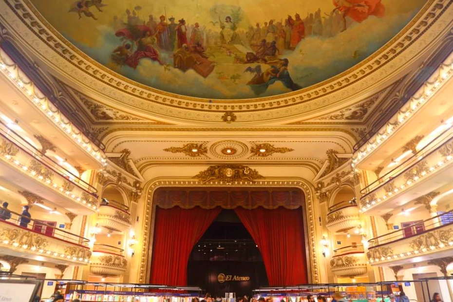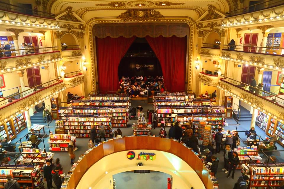 한참을 돌아다니다 보니 어느새 해가지기 시작한다. 우리는 엘 아테네오 서점으로 향한다. 이곳은 세계에서 가장 아름다운 서점으로 불릴 정도로 화려하다. 과거 극장이었던 곳을 개조했다. 내부는 화려한 천장화와 예술품으로 가득하다. 과거 무대였던 곳은 지금은 카페테리아로 운영 중이다.