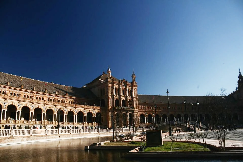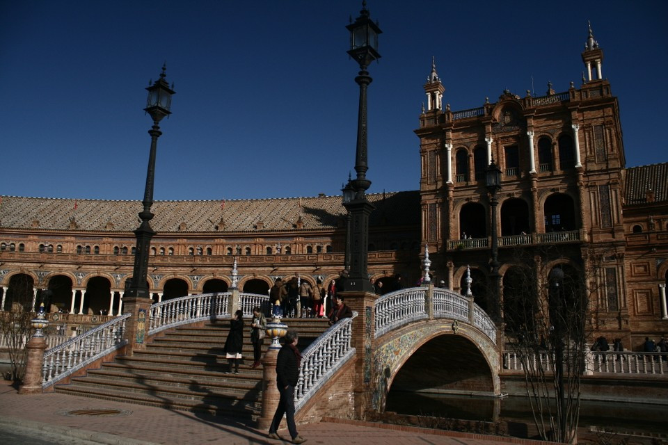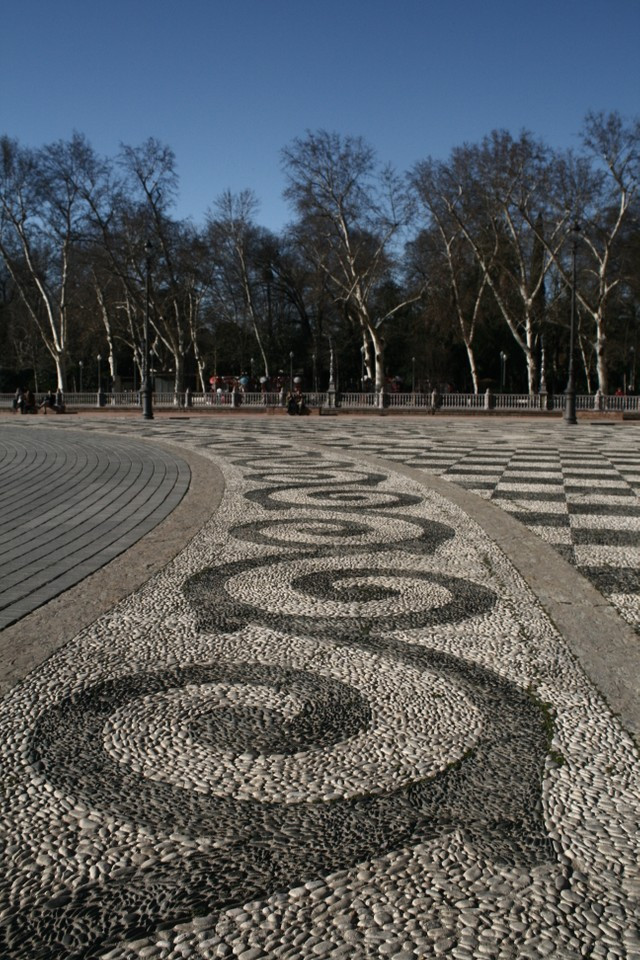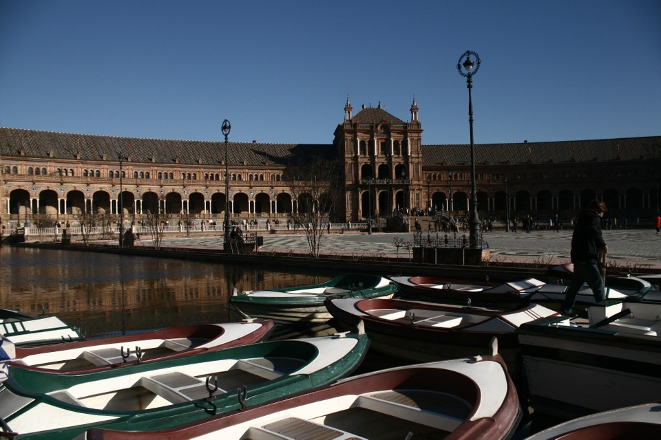 스페인 광장은 정말 넓다. 건축물 내외부 모두 화려하게 꾸며져 있다. 광장을 수놓은 모자이크부터 작은 운하에 떠다니는 배들, 상당한 규모의 건물과 정교하고 멋들어진 조각까지. 박람회를 보기 위해 찾아온 사람들을 설레게 만들었으리라. 특히 스페인의 역사적 사건들을 모자이크로 표현한 부분이 압권이다. 광장에서 건물을 보고 있으면 나 스스로가 초라해지는 기분이다. 문득 김태희가 탱고를 추고 한가인이 달리던 광고가 떠오른다.