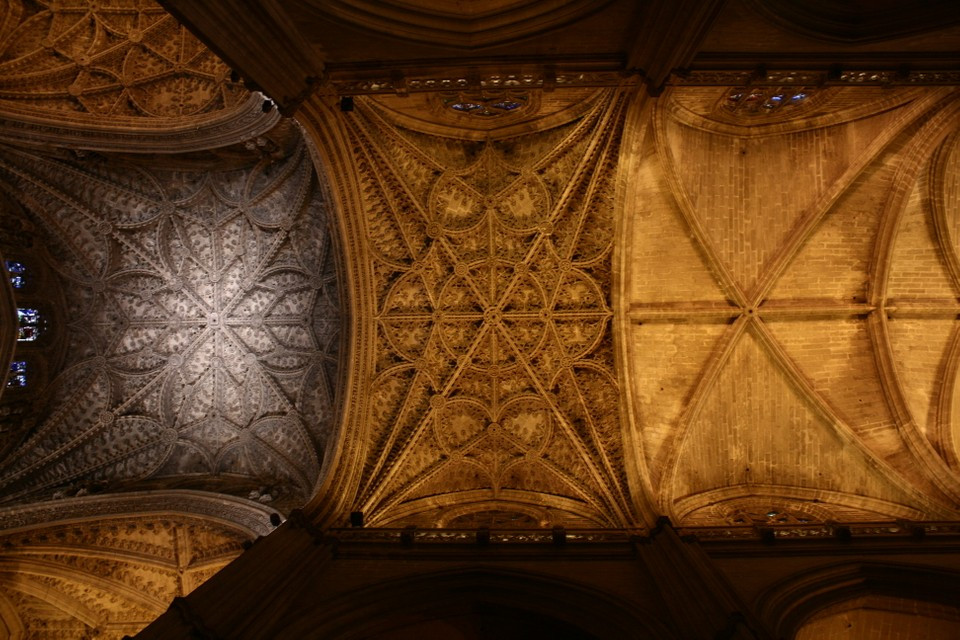 궁전의 내부는 섬세한 조각과 부조로 가득하다. 고딕 양식 특유의 절제된 모습과 내부의 화려함은 당시 교회의 권위를 보여준다. 특히 세비야 대성당은 그 규모부터 화려함까지 어느 하나 모자람이 없다. 약간은 부담스러운 화려함이 내 고개를 누른다. 질 수 없어 하늘을 올려다보니 고딕 특유의 볼트와 아치가 만드는 예술적인 천장이 보인다. 구조물로 만들어진 저 문양들은 성당마다 다양하다. 이때 이후로 성당에 들어가면 하늘을 바라보게 되었다.
