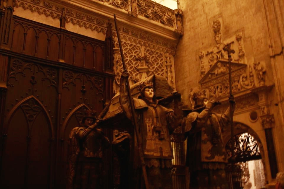 이 성당에는 많은 왕들의 무덤이 있지만 꼭 봐야 하는 무덤이 있다. 바로 콜럼버스의 묘이다. 남쪽 문 근처에 있다. 콜럼버스의 유언은 "죽어도 스페인의 땅을 밟지 않겠다."였다. 그의 후손은 그의 유언에 따라 그가 처음 발견한 신대륙의 땅 쿠바에 콜럼버스를 묻었다. 이후 여러 번의 이장을 통해 과거 스페인의 왕들이 묻힌 이 성당에 안치되게 된다. 어쨌든 스페인의 황금기를 연 인물이다. 비록 원주민에게는 비극이 시작되었지만... 콜럼버스의 마지막 유언을 고려해서인지 그의 관은 공중에 떠있다. 옛 스페인의 왕국인 레온, 카스티야, 나라바, 아라곤을 상징하는 조각상이 관을 메고 있다. 죽어서 짊어지면 뭐하나 싶다.