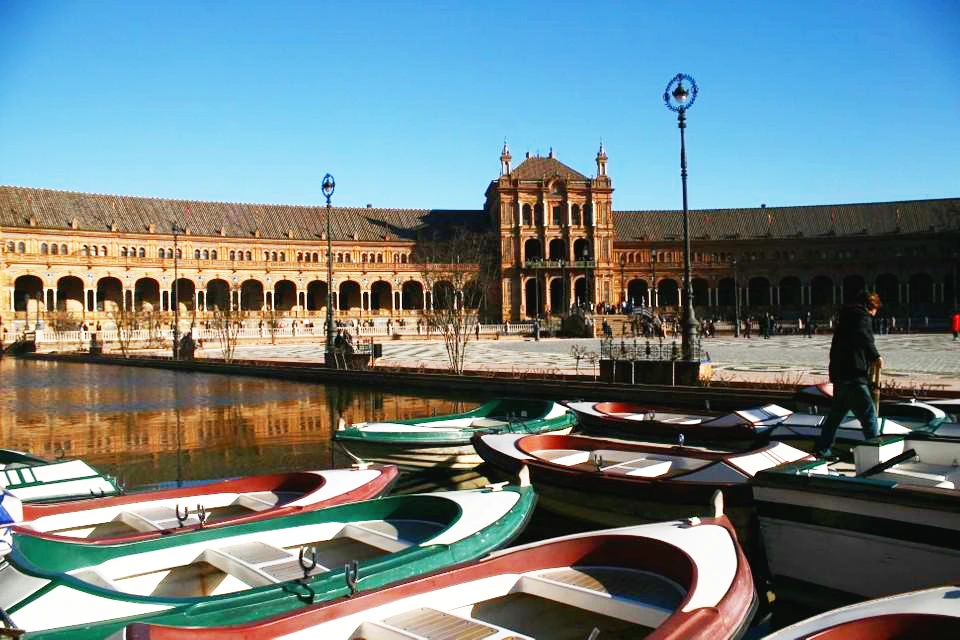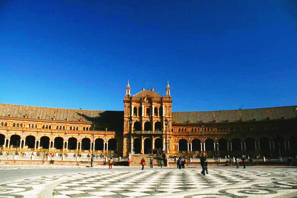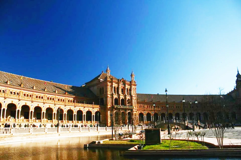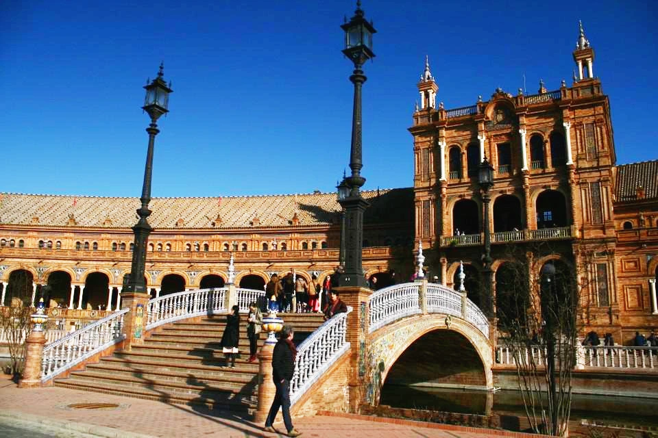 스페인 광장은 정말 넓다. 건축물 내외부 모두 화려하게 꾸며져 있다. 광장을 수놓은 모자이크부터 작은 운하에 떠다니는 배들, 상당한 규모의 건물과 정교하고 멋들어진 조각까지. 박람회를 보기 위해 찾아온 사람들을 설레게 만들었으리라. 특히 스페인의 역사적 사건들을 모자이크로 표현한 부분이 압권이다. 광장에서 건물을 보고 있으면 나 스스로가 초라해지는 기분이다. 문득 김태희가 탱고를 추고 한가인이 달리던 광고가 떠오른다.