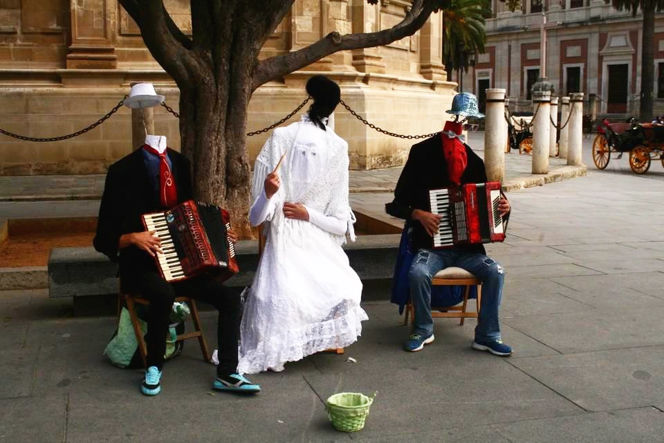 성당 앞 광장에는 거리공연을 하는 사람이 많다. 목 없는 3인조 공연단부터 악기를 연주하는 사람들까지. 기발한 공연에 동전이 남질 않는다.