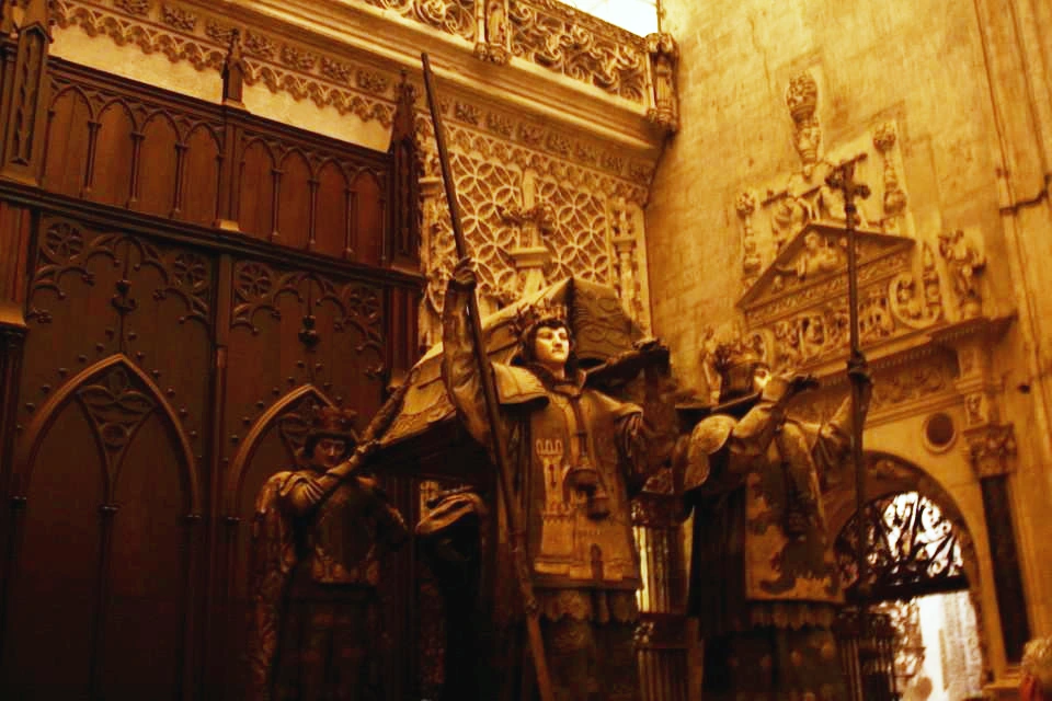 이 성당에는 많은 왕들의 무덤이 있지만 꼭 봐야 하는 무덤이 있다. 바로 콜럼버스의 묘이다. 남쪽 문 근처에 있다. 콜럼버스의 유언은 "죽어도 스페인의 땅을 밟지 않겠다."였다. 그의 후손은 그의 유언에 따라 그가 처음 발견한 신대륙의 땅 쿠바에 콜럼버스를 묻었다. 이후 여러 번의 이장을 통해 과거 스페인의 왕들이 묻힌 이 성당에 안치되게 된다. 어쨌든 스페인의 황금기를 연 인물이다. 비록 원주민에게는 비극이 시작되었지만... 콜럼버스의 마지막 유언을 고려해서인지 그의 관은 공중에 떠있다. 옛 스페인의 왕국인 레온, 카스티야, 나라바, 아라곤을 상징하는 조각상이 관을 메고 있다. 죽어서 짊어지면 뭐하나 싶다.