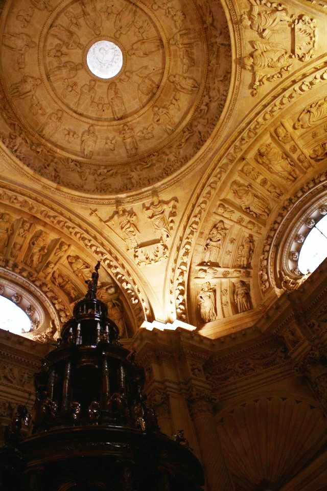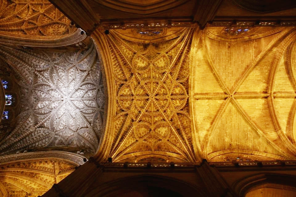 궁전의 내부는 섬세한 조각과 부조로 가득하다. 고딕 양식 특유의 절제된 모습과 내부의 화려함은 당시 교회의 권위를 보여준다. 특히 세비야 대성당은 그 규모부터 화려함까지 어느 하나 모자람이 없다. 약간은 부담스러운 화려함이 내 고개를 누른다. 질 수 없어 하늘을 올려다보니 고딕 특유의 볼트와 아치가 만드는 예술적인 천장이 보인다. 구조물로 만들어진 저 문양들은 성당마다 다양하다. 이때 이후로 성당에 들어가면 하늘을 바라보게 되었다.