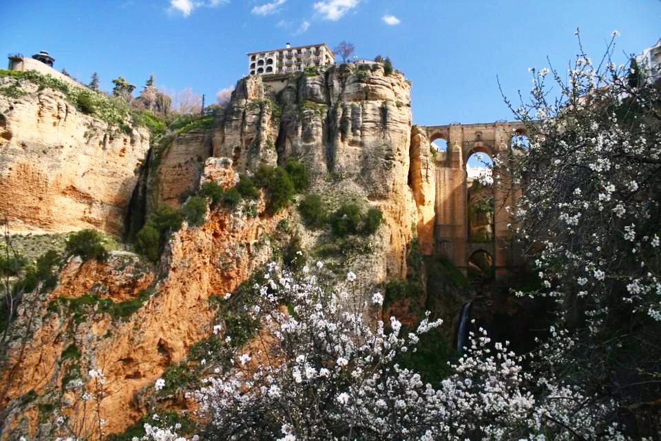 절벽에서 왼쪽 위가 우리가 묵었던 파라도르이고 오른쪽이 론다로 들어가는 누에보 다리이다. 18세기에 지어진 저 다리 덕분에 절벽으로 나눠진 두 마을이 소통을 하게 되었다고 한다. 다리 이름인 Nuevo 답게(비록 두 마을을 연결한 3개의 다리 중 마지막에 지어져서 Nuevo라는 이름을 얻었지만) 두 마을의 새로운 시작을 열어주었다. 다리 밑으로 들어가면 폭포와 계곡이 나오니 가볼 만하다.