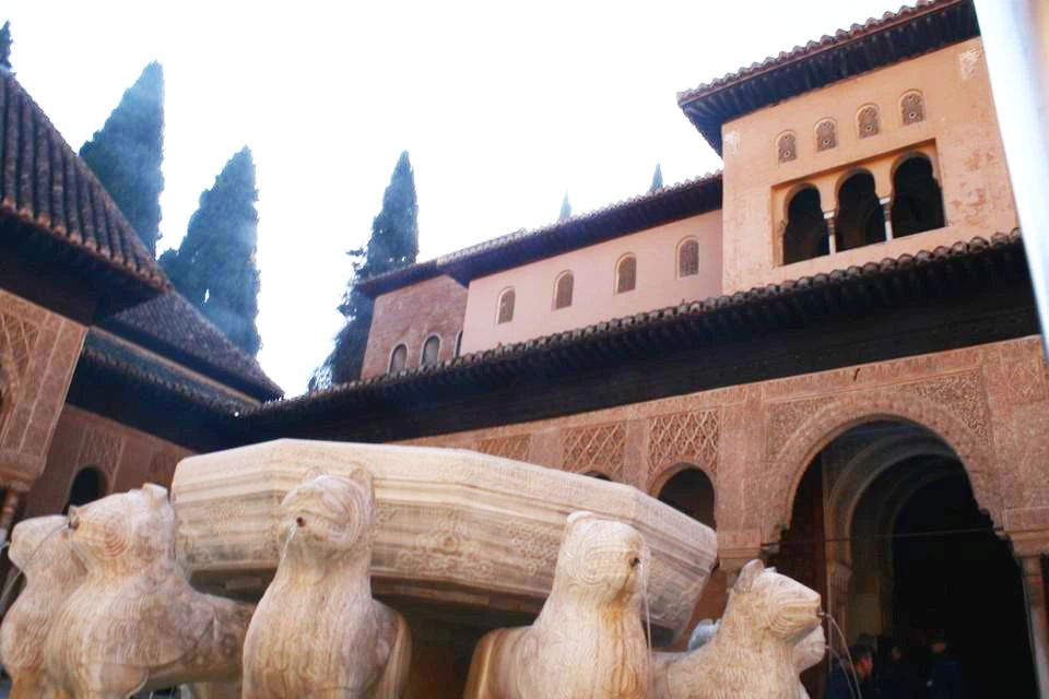 드디어 하이라이트인 사자의 정원이다. 이곳은 왕의 사적인 공간인 할렘이다. 사자의 정원에는 사자상 8마리가 분수를 업고 있다. 투박해 보이는 사자가 귀엽게 느껴진다. 여전히 물을 뿜고 있다.