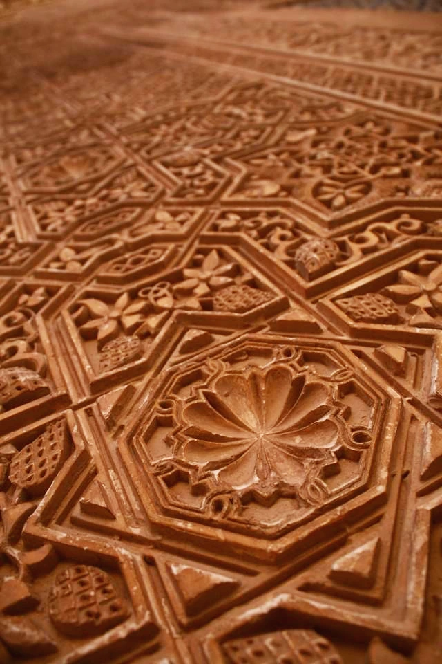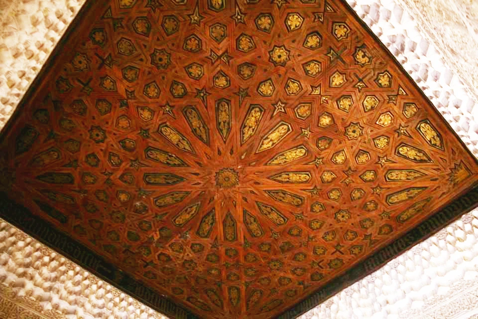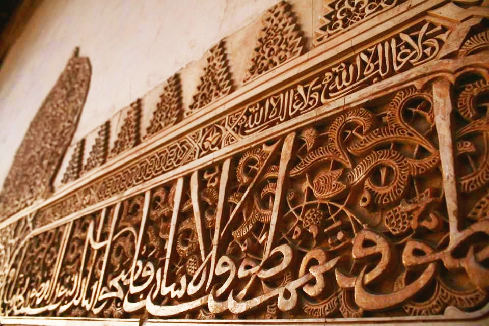 이슬람 특유의 문양인 아라베스크들이 곳곳에 있다. 아라베스크란 아랍 문자와 더불어 식물 문양이나 기하학 문양을 배합한 것들을 말한다. 우상숭배를 금지하고 있는 이슬람답게 그림 대신 아라베스크로 성인들과 알라를 표현해 두었다. 신과 성인들을 표현하다 보니 이들의 문자는 하나하나가 걸작이다. 그들을 찬양하는 또 다른 방법일 것이다. 알함브라 곳곳에서 볼 수 있는 그들의 문자나 다른 조각들은 매우 세밀하여 그들의 기술력과 아름다움에 대한 열망을 엿볼 수 있다.