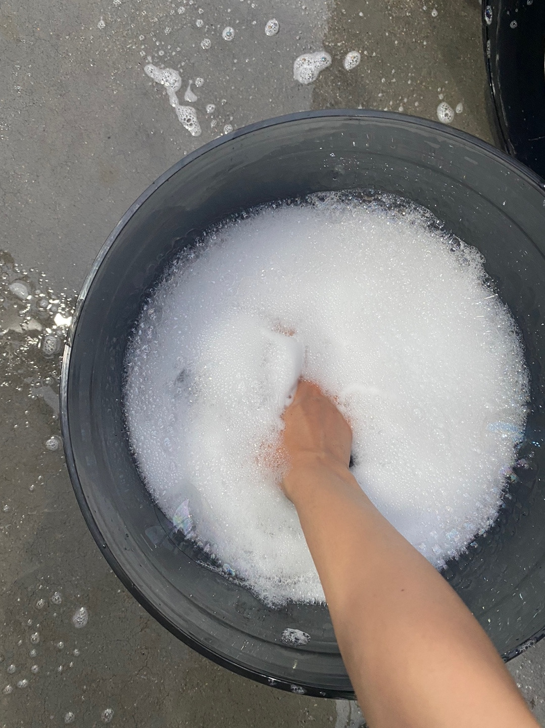 우선 혹독한 지상 생활로 인해 더럽혀진 몸부터 물로 싹 헹궈내야 했다. 머리부터 바퀴 끝까지! 꼼꼼하게 물을 뿌려주었다. 앞으로 얼마나 많은 단계가 기다리고 있는지는 상상도 하지 못한 채 신나게 물을 뿌렸다. 쏴아아- 힘차고 곧게 뻗어나가는 물줄기를 붕붕이에게 쏘아주며 왠지 모를 시원함이 느껴졌다. 묵은 때가 한 번에 싹 씻겨나갈 때마다 내 걱정들도 강한 물줄기를 타고 말끔하게 씻겨나가는 듯한 쾌감을 느꼈다. 이 맛에 모두가 세차를 하는 건가? 생각하며 꼼꼼하게 1차 세차를 마쳤다.