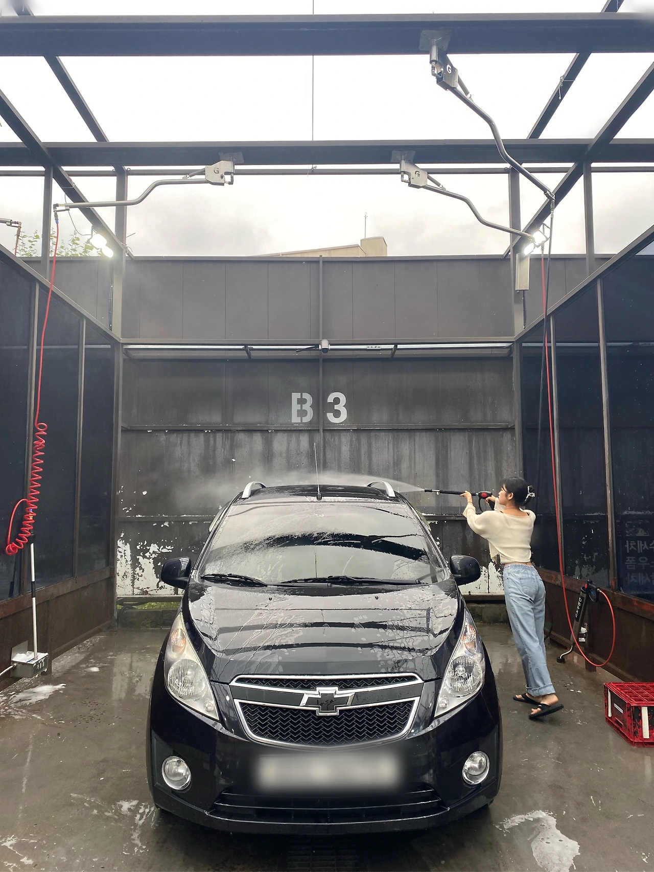 주말 세차장에 사람이 이렇게 많다니! 저녁 일곱 시 무렵의 세차장은 세차를 하러 온 커플들로 북적였다. 다들 세차 데이트를 많이 하는구나... 생각하며 이내 주차를 마친 뒤, 곧바로 세차에 돌입했다.