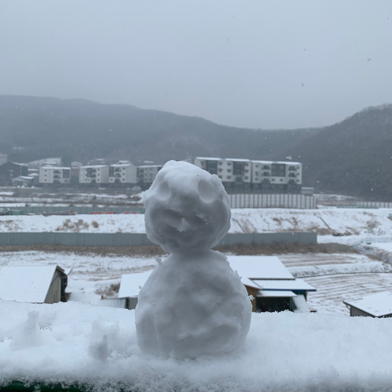걱정은 걱정이고 눈은 눈이니까, 눈 오면 빠질 수 없는 코스인 눈사람 만들기는 빼먹지 않았어요. 카카오톡 친구 목록에 하나둘씩 올라오는 눈사람 사진을 보니 사람 다 똑같아서 귀여워서 많이 웃었고요.