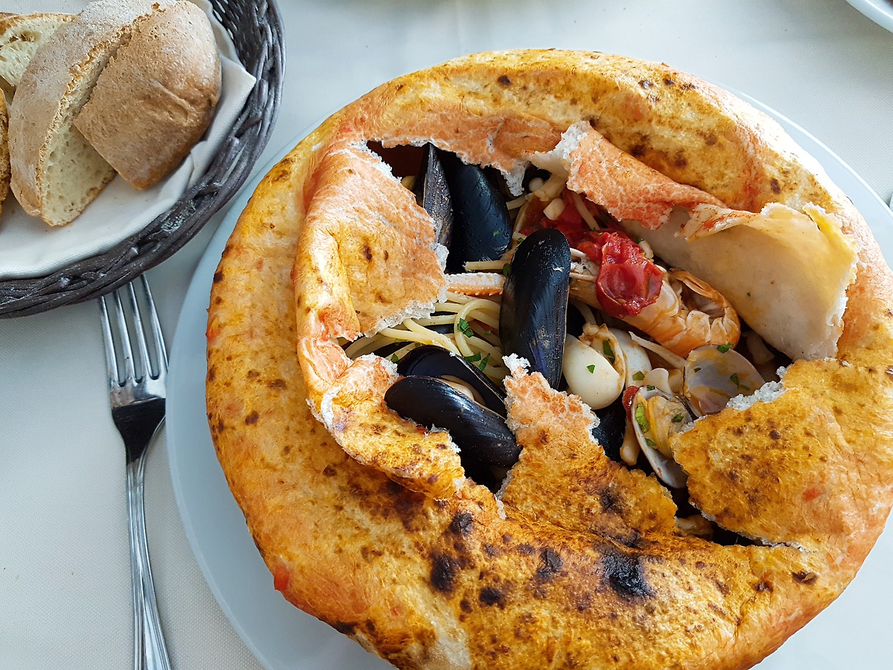 한 가지 재미있었던 점은 해물 파스타가 흡사 계란찜의 모양을 하고 있었다는 건데, 계란이 아닌 토르티야 빵 같은 것이 (오븐에 들어가도 끄떡없는) 파스타 그릇을 감싸고 있었다. 파스타를 먹으려면 그 토르티야 같은 것을 식기로 '열어젖혀야(?)' 했는데 왠지 모르게 우리나라의 해물찜을 먹는 느낌이 들었달까. 파스타에는 새우가 아닌 쏙이 참 많이 들어가 있었는데, 쪽쪽 빨아먹다 보니 짭조름한 양념이 입 안으로 왈칵 들어오는 게 재미있기도 했다.