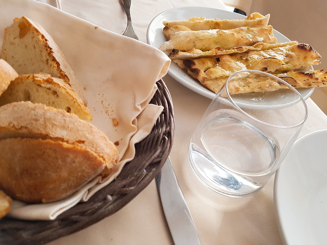 주인아저씨는 두 종류의 식전 빵을 서빙해 주셨다. 하나는 나무 바구니에 담긴 제법 큰 덩어리의 빵들이었고, 또 다른 하나는 올리브 오일을 바르고 구운 듯한 납작한 빵들(사실 빵보다는 과자라고 해야 할까?)이었다. 아저씨께선 이런 빵을 제공하는 일이 너무나도 당연하다는 듯이 테이블 위에 무심하게 식전 빵 두 그릇을 툭 두고 가셨고, 우리는 아무런 의심 없이 '인심 좋은 가게네'하고서 두 가지의 빵을 맛있게 먹었더랬다.
