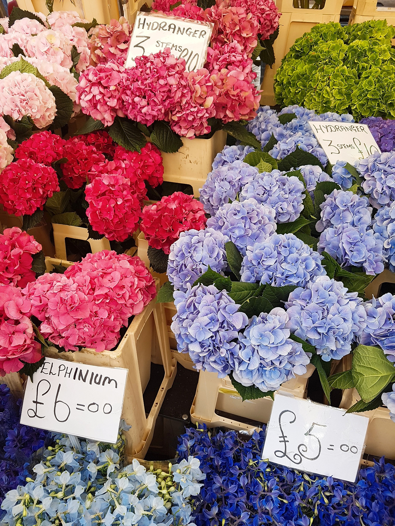 콜롬비아 꽃시장은 일요일마다 열리는 소규모의 시장으로, 자그마한 빈티지 상점들 주변에 자리를 잡고 있었다. 시장과 가까워질수록 거리가 꽃향기로 가득 찼다. 거기까진 참 좋았다. 그러나 머지않아 런던 꽃시장에 관한 나의 오랜 환상은 제대로 깨져 버렸다. 그도 그럴 것이, 우선 오드리 헵번이 없었다. 그리고 결정적으로 근육질 팔뚝을 자랑하며 타투와 '러닝셔츠' 차림의 아저씨들의 꽃바구니를 쉴 새 없이 옮기면서 '후- 원트 썸 썬--플라워!?' 하고 소리를 지르시는 게 아닌가(맙소사...). Posh English는 기대하지 않았다. 무언가 꽃을 닮은 사람이 꽃을 추천해주는 풍경을 기대했는데...