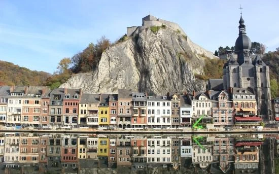 오늘의 목적지는 디낭(Dinant). 편도 2시간 거리에 위치해 있는 디낭에 도착하기까지, 밀폐용기에 담아온 크렌베리를 한 주먹씩 먹기를 반복하면서 창밖을 구경했다(기차에서 내린 뒤에야 손이 크렌베리처럼 시뻘겋게 물들어 있다는 걸 알아차렸다). 디낭에 도착하자마자 이 지역의 시그니처 포토존이 눈앞에 펼쳐졌다. 샤를 드골 대통령의 동상 뒤로 뫼즈 강이 흐르고 있었고, 요새 역할을 하던 성 시타델을 산머리 위에 이고 있는 노트르담 성당이 눈에 들어왔다. 성당 옆으로 알록달록한 집들이 쪼르륵 모여 있었는데, 뫼즈 강 수면 위에 색색의 집들이 반사되어 쌍 무지개가 뜬 것 같은 풍경이었다.