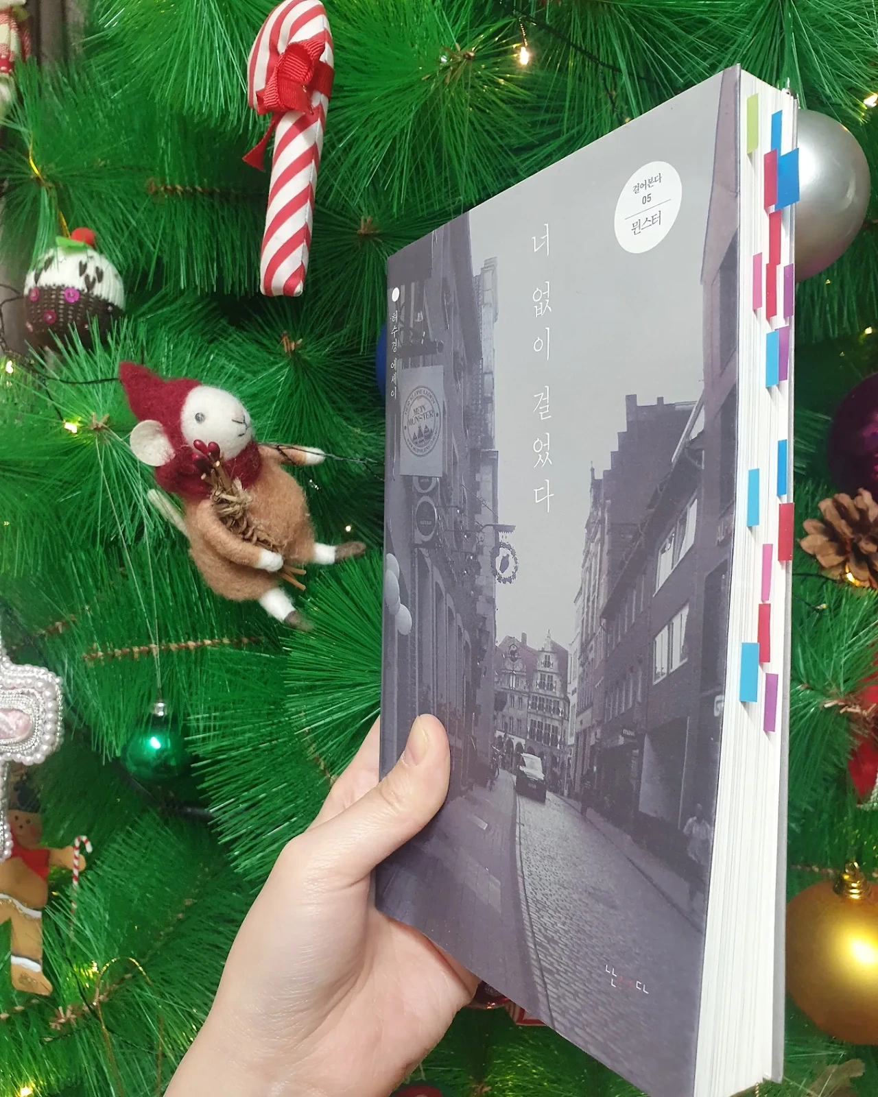 그러다 눈에 들어온 한 권의 책이 있었다. 북메이트이자 인생 멘토인 선숙쌤께서 빌려주신 책이었다. #허수경 에세이 #너없이걸었다. '내가 아끼는 책이니 다 읽고 꼭 돌려줘야 해, ' 라며 점심 자리에서 내게 책을 건네주셨던 게 기억이 났다. 애정 하는 책을 빌려주기란 쉽지 않을 일인데, 라는 생각과 함께, 2022년에 다시 가질 점심 식사 자리에서 독후감과 함께 책을 돌려드리고 싶다는 생각이 들었다. 때마침 겨울이 성큼 다가와 있었고, 겨울 하면 나와 떼려야 뗄 수 없는 나라, 독일이 드문드문 생각나던 때였다(2012년도 겨울학기, 나는 독일 마인츠로 교환학생을 간 적이 있다). 문장 속에서 가보지 못한 독일 뮌스터를 방문해 볼 수 있다는 생각, 그리고 멘토 쌤과 나눌 독후감을 기대하며 책장을 펼쳤다.