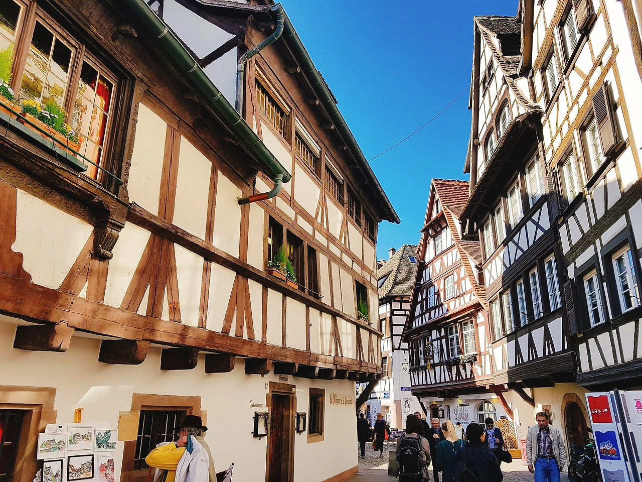 정작 심리적으로 가까운 타이틀은 알퐁스 도데의 단편 <마지막 수업>의 배경 도시이자 지브리 스튜디오의 <하울의 움직이는 성>의 스케치 배경 도시였다. 관광객들은 스트라스부르를 '크리스마스의 수도'라 부르며 독일과 프랑스의 디자인 강점이 뒤섞인 거리로 도시를 기억하곤 한다. 방금 전까지 아기자기하고 섬세한 프랑스풍 디자인을 빵집을 비롯한 여러 가게 쇼윈도에서 보았는데, 뒤를 돌아 강변 풍경을 살피면 독일 전통 가옥들이 줄지어 서 있다. 국경선을 몇 번이고 새로 그었던 비극적인 과거가 이제는 프랑스와 독일 두 나라를 교묘하게 섞어 놓은 풍경을 자랑하는 것으로 대체되고 있다.