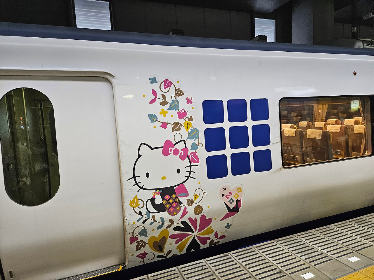 뽀얀 얼굴에 붉은 리본, 누가 봐도 고양이인데 제작사(?) 측에선 소녀라고 우기는 캐릭터가 기모노 차림을 하고서 우리를 환영하고 있었다. 티켓 발권부터 기차 탑승까지, 꽤나 "일본스럽다." (과연 이 "일본스럽다"라는 표현의 정의가 여행 전과 후로 어떻게 달라질까?)