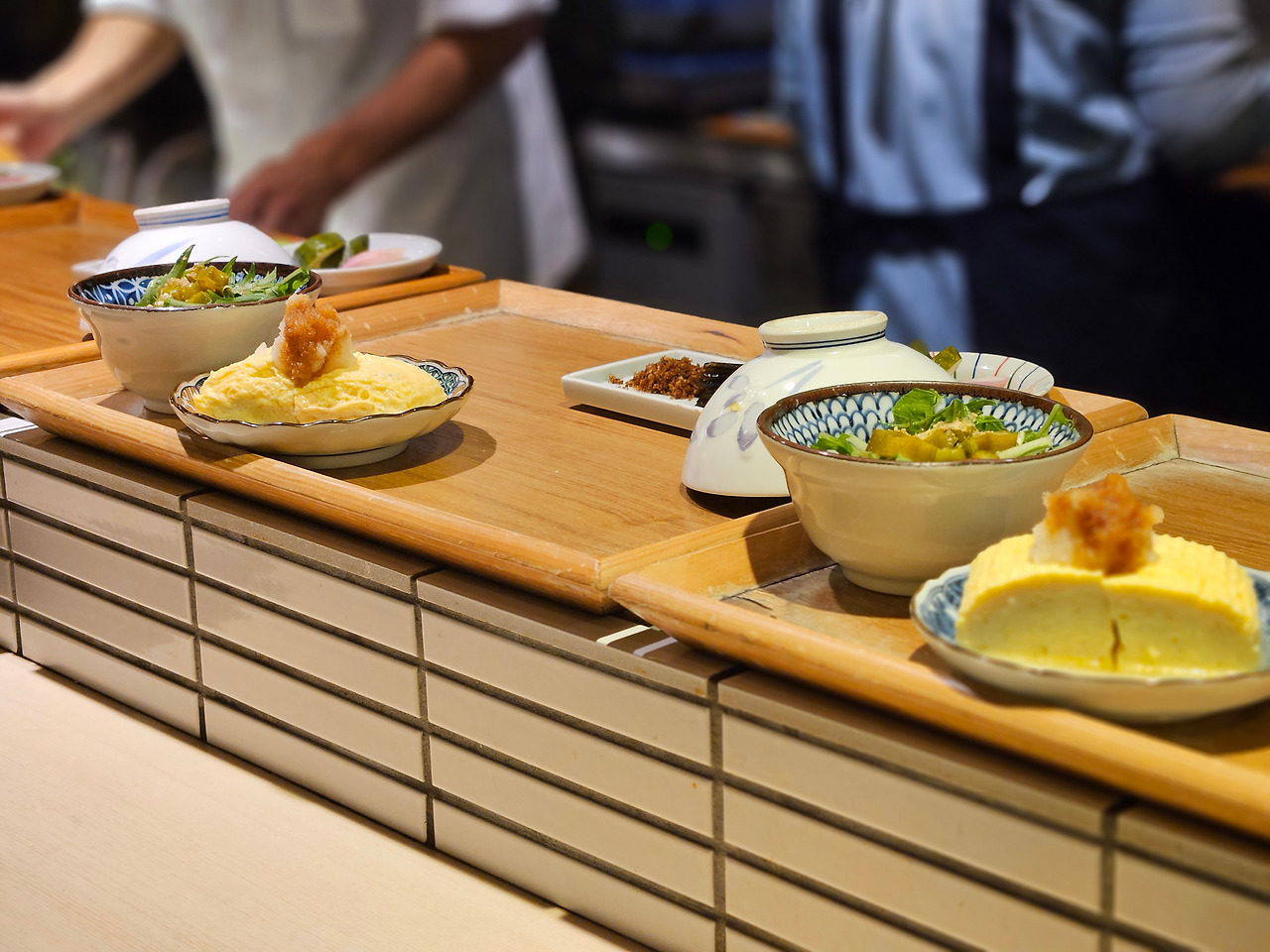 2인 손님은 오픈 키친을 마주하고 앉는 바 자리로 안내를 해주는 듯했다. 정갈한 반찬들을 하나둘씩 담아내는 는 모습을 지켜보고 있으니 장인 정신을 맛보는 기분도 들었다. 연어 구이를 메인으로 한 상차림은 다양한 모양의 그릇으로 구성되어 있는데, 제철 반찬들이 개성을 뽐내며 그릇마다 자리하고 있는 모습이 꼭 알록달록한 나의 스크랩북 같았다. "이타다끼마스(いただきます; 잘 먹겠습니다)"하는 인사를 맘속으로 내뱉고선 젓가락을 들었다.