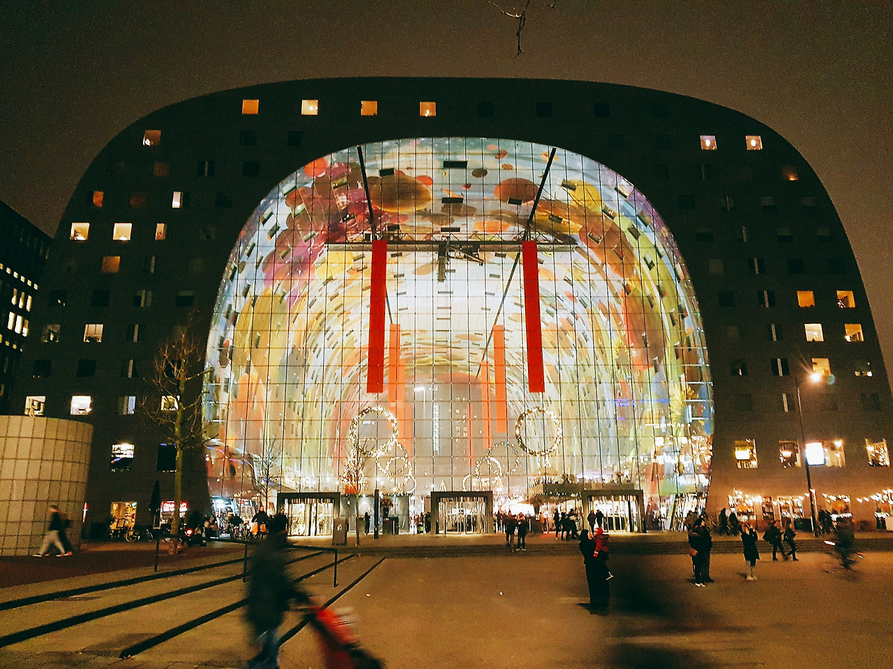 호스텔 바로 앞에는 커다란 마켓이 위치하고 있었다. 말발굽 모양을 하고 있는 그 마켓은 'Markthal(눈치껏, 마켓홀이라는 말 같다)'이라 불리고 있었고, 화려한 식료품 조명들을 건물 내부에 조명을 쏘아 대고 있었다. 감자튀김과 홍합요리, 그리고 여행 중 면역력을 챙기기 위한 귤 2kg까지, 로테르담 여행의 장보기와 식사를 해결해 준 고마운 마켓이다.