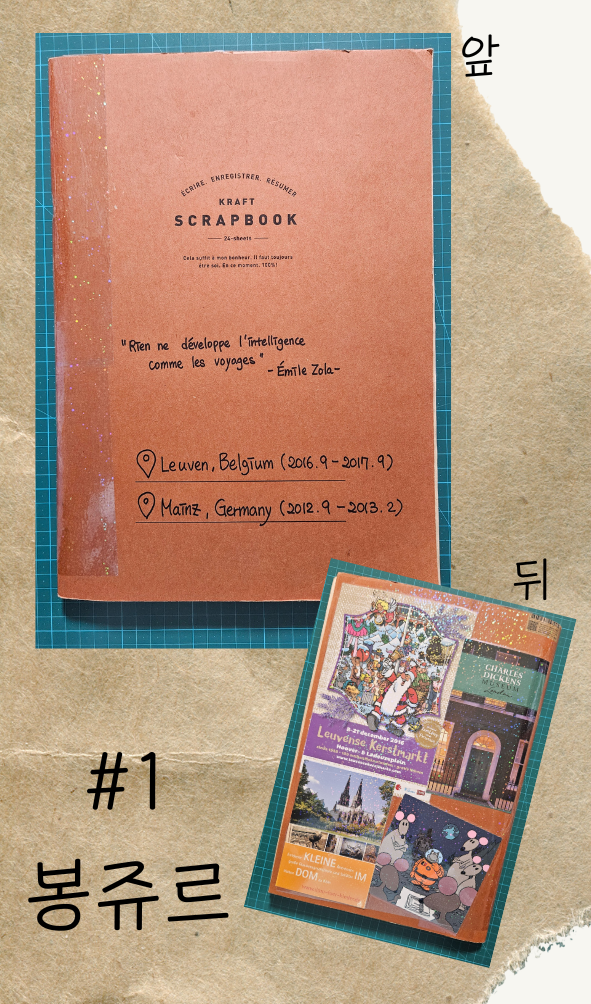 프랑스어를 처음 배우던 대학원생 시절에 구입한 첫 번째 스크랩북이다(녀석의 이름이 '봉쥬르'인 건, 프랑스어 학원 근처 아트박스에서 샀기 때문!).