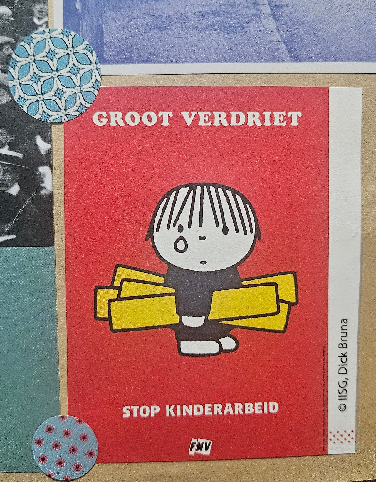 여기 붙어 있는 포스터는 '아동 노동을 멈추라(Stop Kinderarbeid)‘라는 메시지가 담긴 일종의 사회 운동 포스터야. 나무판자로 추정되는 큼지막한 물건을 잔뜩 짊어지고 공허한 표정으로 눈물 한 방울 뚝 흘리는 아이라니, 더치를 못 하더라도, 더치와 비슷한 독일어로 뜻을 유추를 하지 않더라도, 가슴 아픈 장면이지.
