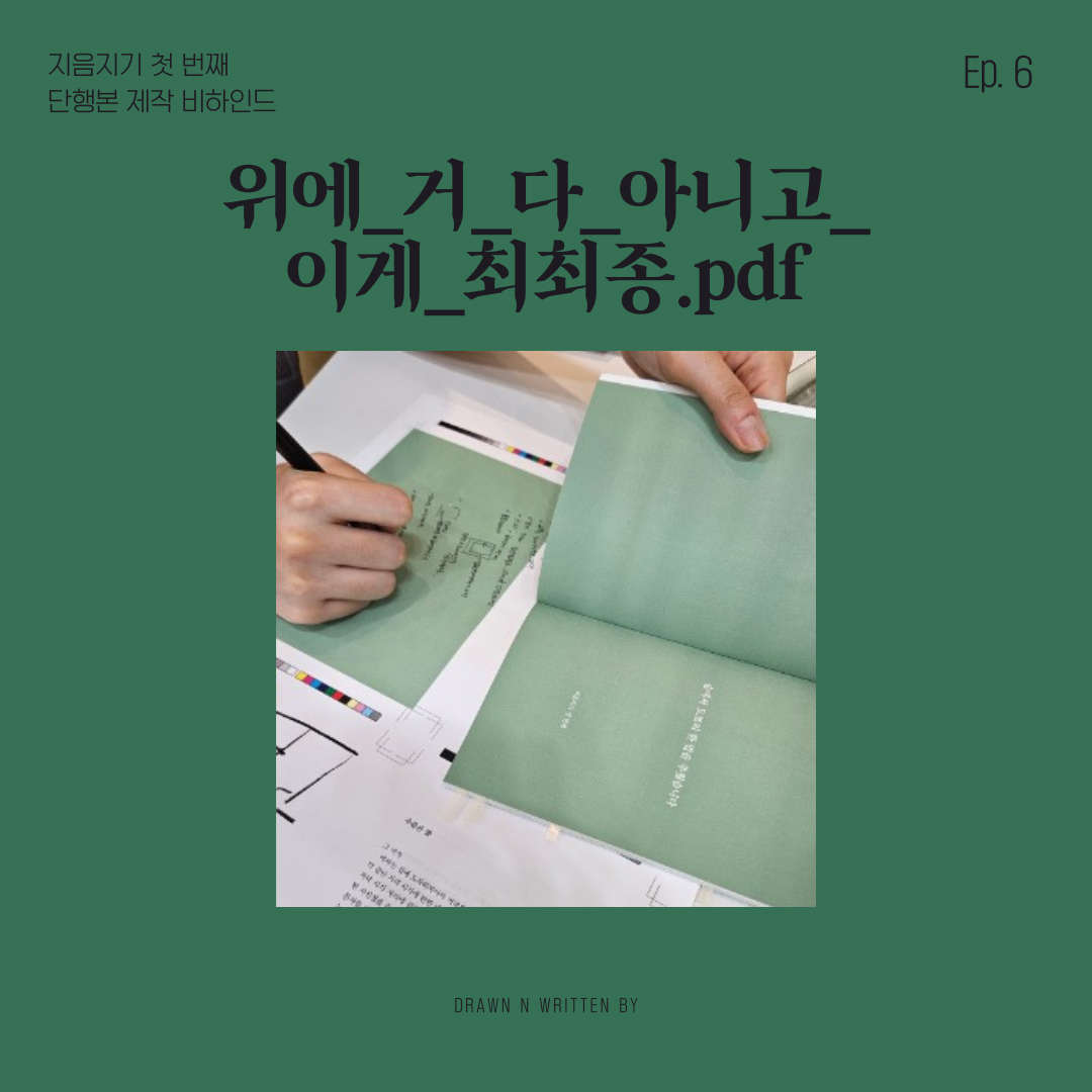 [선 온라인 연재, 후 단행본 출간]이라는 공식을 프로젝트 리을에서도 고수할지는 조금 더 고민하고 있다. 해당 방식이 지음지기의 작업 속도를 높여준 건 맞지만, 온라인상에서 확인 가능한 콘텐츠를 직접 사서 읽기란 어렵지 않은가? 그래서 이번엔 북페어나 북토크 등 독자분들을 직접 만나는 자리에서 콘텐츠와 책을 함께 공개하는 방식으로 작업을 진행해 볼까도 싶다. 이따금 인스타그램을 통해 작업 일지를 공유하겠지만 말이다. 하지만 실시간으로 독자분들과 소통하는 재미도 쏠쏠하기에 작업 공정을 어디까지 미리 공개하고, 어디서부턴 감춰둘지 정연이와 좀 더 고민해 보아야 한다.